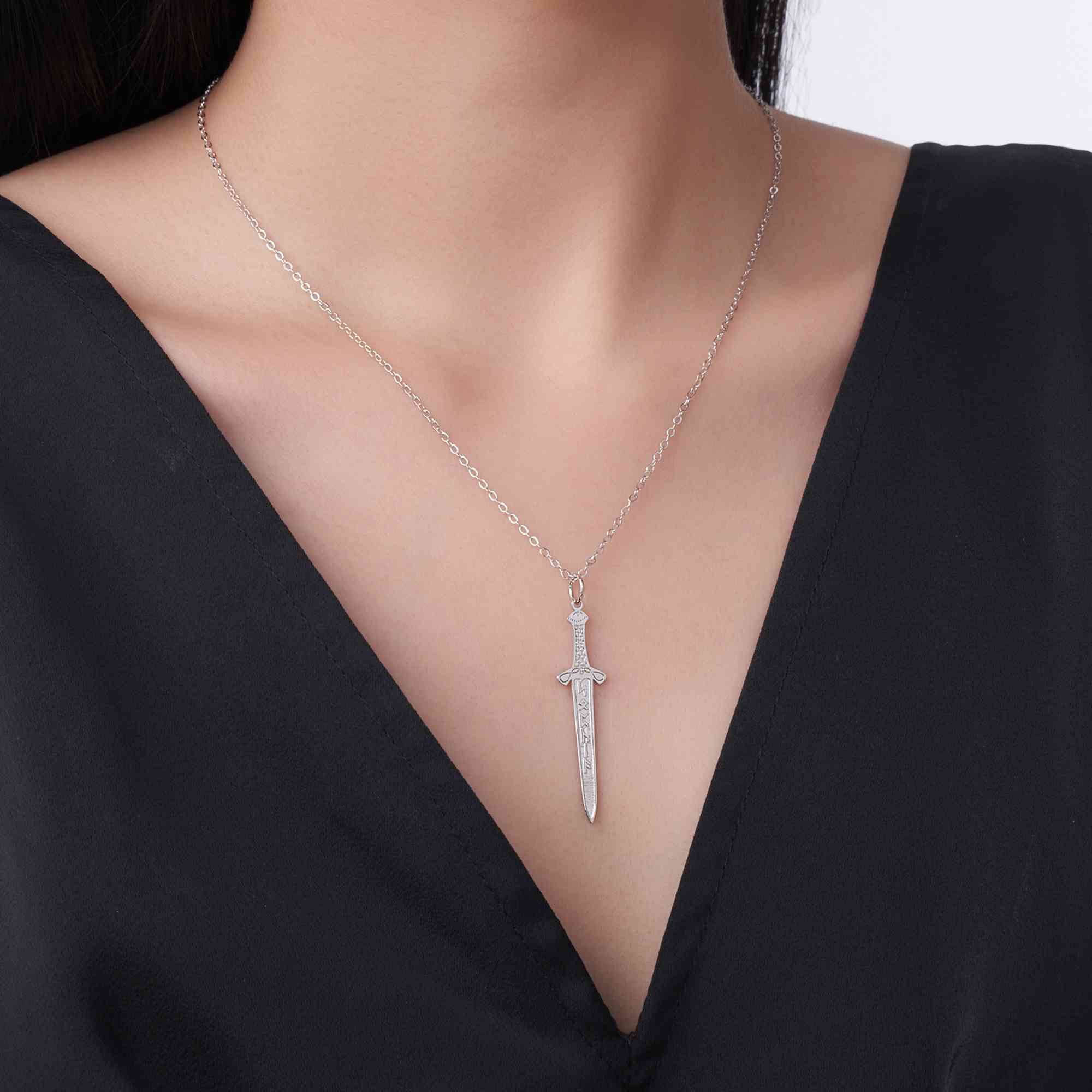 Viking Sword Design - This necklace features a bold Viking sword pendant inspired by ancient runes and Celtic warrior symbols. Its sharp lines and detailed shape give it a cool, confident look that stands out on any outfit.